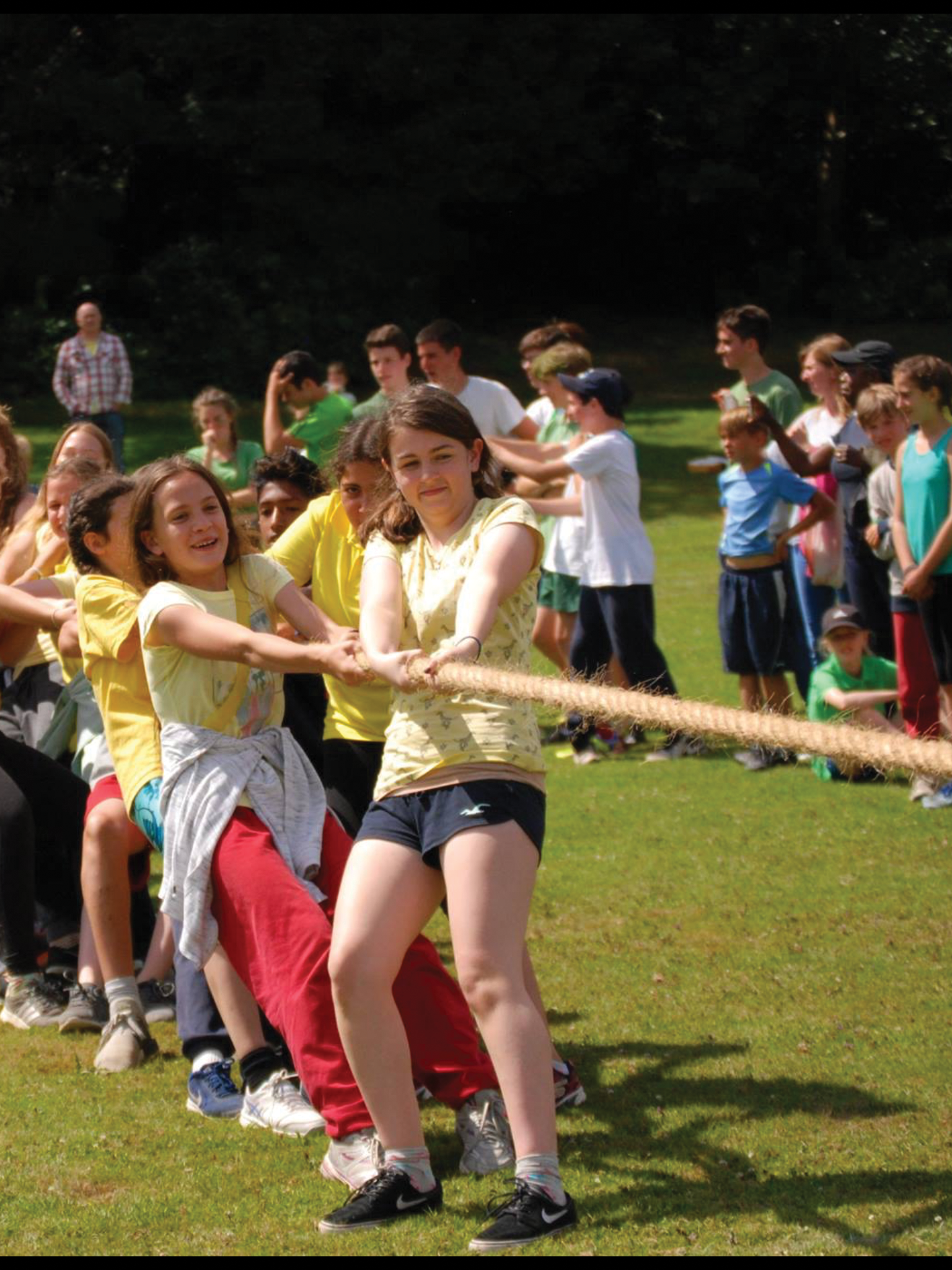 Daisy competing in tug of war at the Michael Hall school